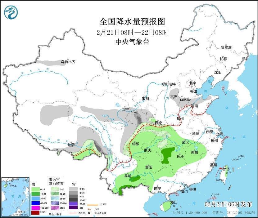昨日,降雨主要出现在江南地区,其中湖南中南部、江西、安徽南部、浙江、福建西部和北部、广西北部、台湾岛北部等地有中到大雨,局地暴雨。预计21日至25日,江南、华南、江汉及西南地区等地仍多阴雨天气,北方大部地区天气晴好,西北地区东南部、华北南部、东北地区东北部等地有弱降雪。